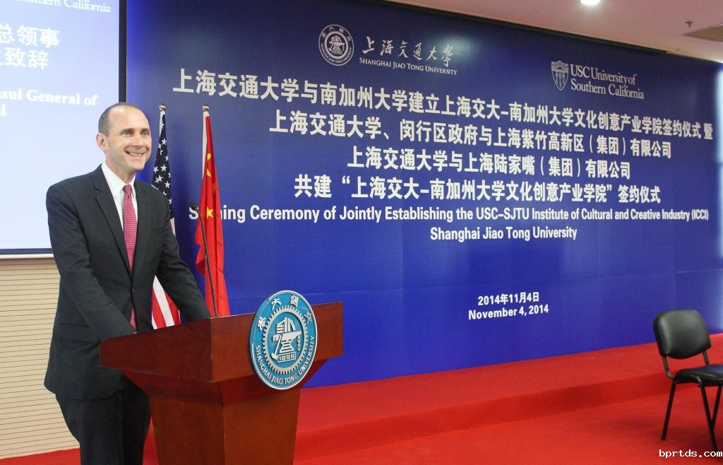 随后,姜斯宪与教育部国际合作与交流司副司长赵灵山,和美国驻上海总领事Hanscom Smith、南加州大学教务长Elizabeth Garrett共同上台,以揭幕的形式宣布伟德官网app—南加州大学文化创意产业学院筹备工作启动。