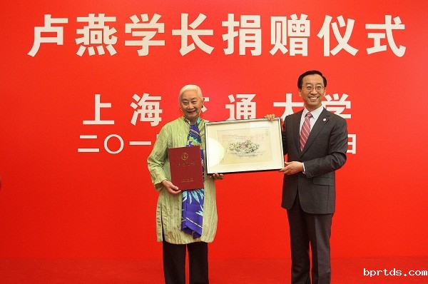 张杰向卢燕学长致送捐赠证书,以及一份精心准备的礼品——学生绘制的思源湖燕云亭。张杰代表全校师生员工衷心感谢卢燕学长的母校情,他说,卢燕学长杰出的艺术造诣和高尚的精神品格使她获得了世界的尊重,她是华人的骄傲,更是交大人的杰出代表。卢燕学长的人生经历就是“感恩、责任、激情和梦想”最鲜活的教材,她的人生经历告诉我们:只要坚持梦想,永葆激情,追求卓越,定能走向成功。从1945年至1947年,虽然卢燕学长在交大的学习时间不长,但是“饮水思源,爱国荣校”的母校情结却深深烙印在她的心中。卢燕学长对学弟学妹的关爱,对母校文化事业发展的厚望,都是因为她有一颗最纯净的“交大心”,启迪着学子们传承和弘扬交大精神,茁壮成长。